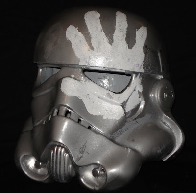 (Grant) I mixed my two nerdy loves - Star Wars and Lord of the Rings - and went with the "Uruk-Hai Trooper" helmet. Essentially it's supposed to be a weathered, slightly battle-worn, metal helmet with the White Hand of Saruman slapped across the front!